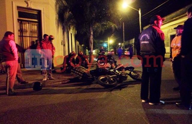 Todo paso en las intersecciones de las calles B. Mitre esquina E. Ríos pasadas las 20,30 horas donde que dos motos colisionaron entre sí, dejando a uno de los conductores herido quien debió ser asistido por bomberos y posteriormente trasladado al hospital en ambulancia, en tanto el otro conductor resulto ileso.