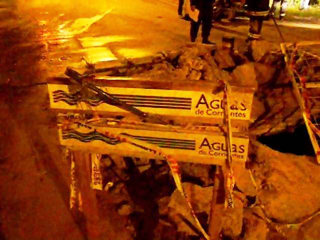 Termino en el hospital por chocar un bache de Aguas de Corrientes