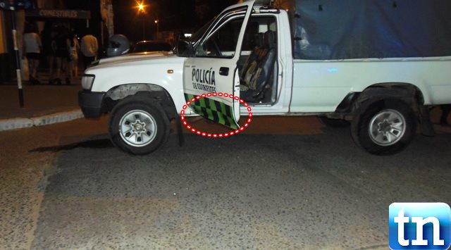 Alrededor de las 6 de la mañana del sábado una joven identificada como Yohana Moreyra de 18 años de edad quien circulaba por Av. Caa Guazú a bordo de una moto Honda 125 Cross blanca dominio 723 HFS a alta velocidad según indicaron testigos en el lugar y que al llegar al cruce con la calle Entre Ríos se encontró con el móvil policial 719 y dado la velocidad en que circulaba impacto de lleno contra la puerta del patrullero rompiendo la ventanilla del lado del conductor como así también aboyando la puerta del mismo lado.