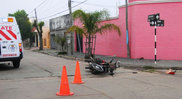 Carlos Ríos conducía una motocicleta 110 c.c Zanella y Hernán Martínez conductor de motocicleta Guerrero 150 c.c, resultaron con politraumatismo al chocar en la intersección de las calles 9 de Julio y Alvear. El hecho ocurrió aproximadamente a las 06:50 hs en la mañana de este martes, en el feroz impacto las dos personas quedaron tendida en el pavimento, resultando una de ellas con perdida de sangre. IMAGENES
