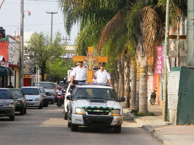Llego a la ciudad de Goya de la Cruz de San Damián, bendecida por el Papa Francisco. La procesion fue desde paraje el Zorzalito, arribando por la zona centrica, custodiada por la Policia y Bomberos, la misma arribo en el Instituto Presbitero Manuel Alberti. Durante toda la mañana recorrerá algunas escuelas secundarias y a la tarde las parroquias, permaneciendo una hora y media en cada lugar. VIDEO