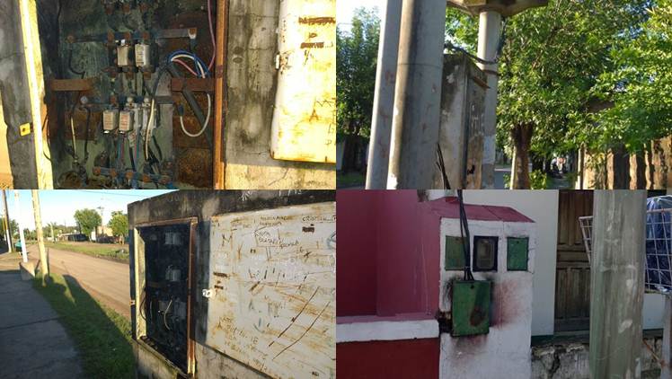 Vecinos se muestran molestos por el estado calamitoso en el que se encuentra pilares domiciliarios y los gabinetes de baja tensión donde distribuyen energía por sector a usuarios de diferentes barrios en la zona sur, cables colgando y muchos están a metros del colegio 370 por donde transitan a diario muchísimas personas. IMÁGENES