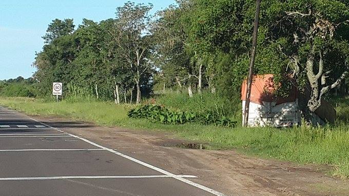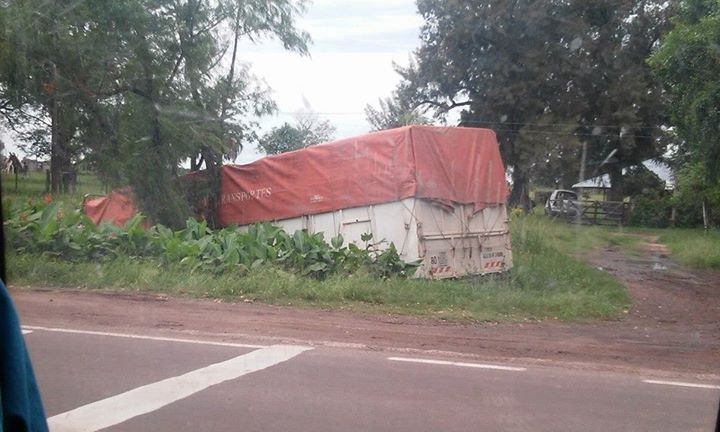 Un camión que transitaba de sur a norte a toda velocidad por Ruta Nacional 12, cruzo sin aminorar la marcha el Puente Bailey del paso San Juan y se desengancho el acoplado, en el envión termino al costado de la banquina. IMAGENES