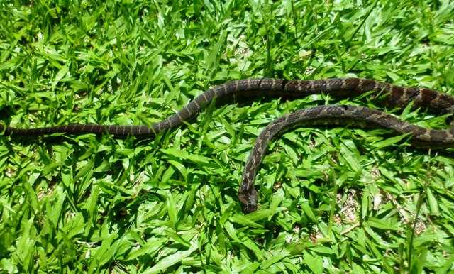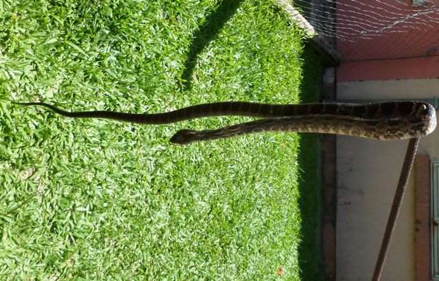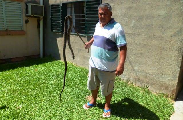 En la mañana del lunes un efectivo policial de comisaria 3ra de esta ciudad conocido como Benítez, en momentos que se encontraba en su casa por disfrutar del feriado en familia, fue sorprendido con la aparición de una yayara en el jardín delantero de su vivienda en el momento que salía a mirar por sus hijos.