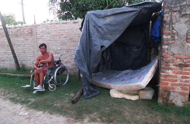 Un joven de 32 años de edad de nombre Luis Alejandro González vive hace varios días en la entrada a un pasaje por calle Monseñor de Andrea al 260, en una carpa de plástico negro improvisada. Esta persona desde los 18 años de edad se moviliza en una silla de ruedas a raíz de un accidente que sufriera en Rosario y aun así, pese al cobro de un alquiler que le efectuaba su tío, este lo hecho a la calle con lo puesto.