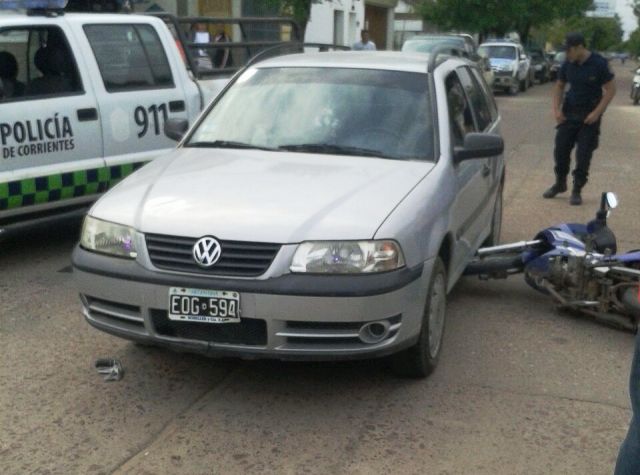 Días atrás se registro una colisión en la esquina de Alvear y Colon en donde resulto herida una joven identificada como Lucia Ortiz quien se desplazaba a bordo de una motocicleta INSA dominio EKB 837 luego de colisionar con un automóvil VW Gol Country chapa patente EOG 594 guiado por Valenzuela Horacio. Tras el impacto,asistio al lugar efectivos policiales de comisaria 1ra, Bomberos Voluntarios de Goya, personal de Inspectores de Transito y ambulancia.