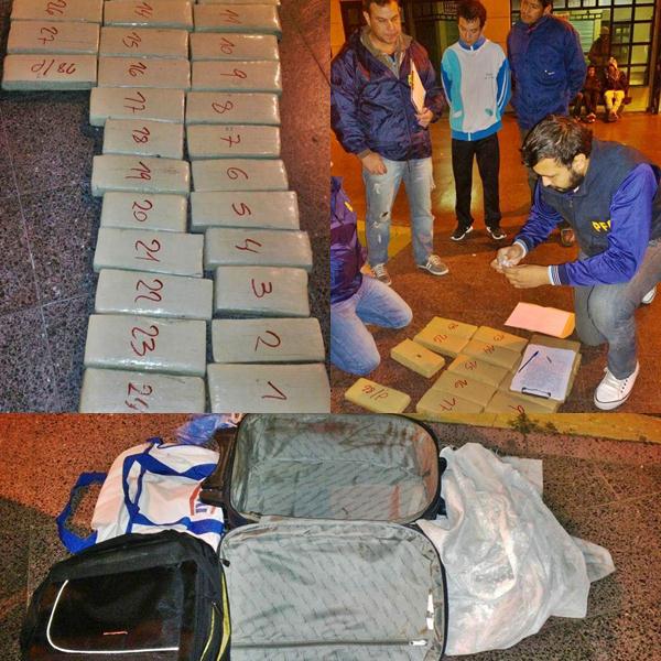 NOTA AMPLIADA: En procedimiento se llevó a cabo en Bella Vista, donde un sujeto de apellido Ayala (26 años), fue interceptado por los efectivos que estaban apostados en la terminal de dicha localidad, en la requisa se lo encontró en su poder un pan de marihuana, luego al requisar su equipaje se encontró 27 panes más, cuya mercadería peso alrededor de los 28 Kg, informaron desde la fuerza a cronistas de TNGOYA. Fue detenido y trasladado a la delegación de nuestra ciudad, donde permanece detenido a disposición de la justicia federal. IMÁGENES