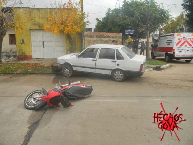 En la mañana del sábado se registró un accidente de tránsito en 9 de Julio y Baibiene, donde por razones que se tratan de establecer colisionaron una moto Guerrero Smash de 110 cc, sin dominio colocado, que era conducida por Edgardo Daniel Sánchez y un Fiat Duna, dominio ABB- 829, en el cual se desplazaba Ceferina Canario . El motociclista recibió al peor parte debido a que termino con fractura en una pierna y un serio golpe en la cabeza.