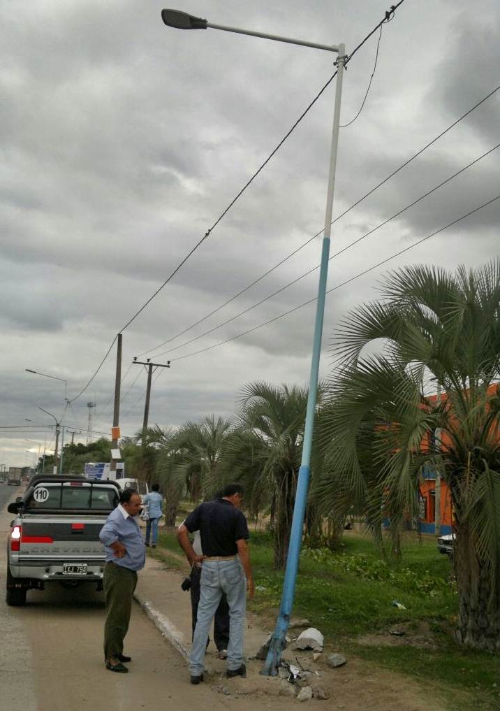 A dias de inaugurarse las luces LED un auto se llevo puesta una columna