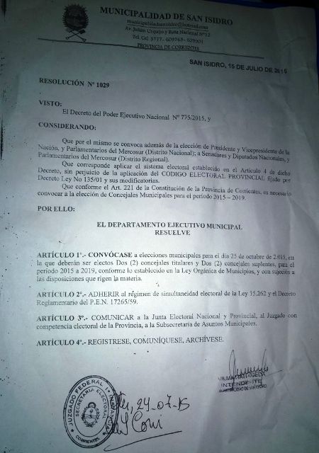 De esta manera y a través de un comunicado de prensa la municipalidad de San Isidro hace saber que, en las elecciones a realizarse en el mes de Octubre, se estarán eligiendo a dos concejales y sus suplentes para sumarse al equipo de trabajo del municipio. Así lo hacen saber y además se envió copia fiel a la Junta Electoral Nacional y Provincial.
