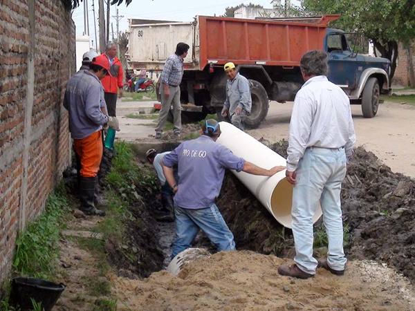 El intendente Gerardo Bassi constató el inicio de la obra que tiene como objetivo mejorar el escurrimiento de agua de lluvia en el barrio Laguna Bosco. PRODEGO coloca caños de PVC corrugado, en la calle Santa Fé.