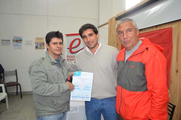 Este viernes en la Dirección de Empleo de la Municipalidad, el Intendente Gerardo Bassi acompañó a su titular Juan Ignacio Manzanares, en la entrega de “certificados de aprobación y credencial de Registro Laboral del IERIC (Instituto de Estadística y Registro de la Industria de la Construcción)” correspondiente a los cursos de capacitación en oficio de ALBAÑILERIA e INSTALACION SANITARIA DOMICILIARIA, del Periodo 2014.