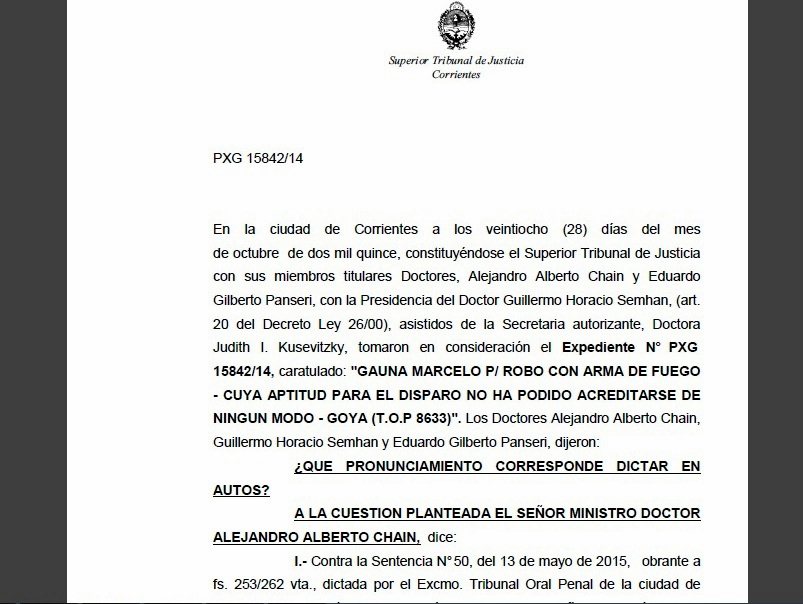 El Tribunal Oral Penal de Goya, en el mes de mayo condenoo a seis años de prision por robar a mano armada en el 2014 la FORRAJERIA EN ANCLA, ubicada en Avenida Mazanti, la defensa apelo pero Casacion, termino confirmando la condena a Marcelo Gauna único sindicado y reconocido tras el violento asalto sufrido el señor Ojeda. El condenado fue detenido a pocos metros del local comercial. El complice huyo con los $60 mil pesos robados, que jamas aparecieron al igual que quien los llevo.