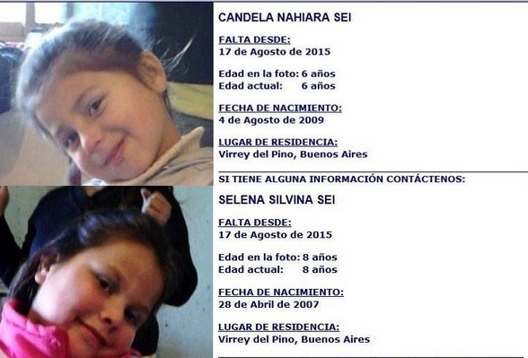 La organización internacional Missing Children colabora en la búsqueda de dos niñas que, se sospecha, fueron sacadas del domicilio de su padre en Virrey del Pino, Buenos Aires, y llevadas a la ciudad de Goya, en un hecho derivado de un conflicto familiar. La intervención de la organización internacional se originó en una denuncia del progenitor de las niñas, Roberto Sei, quien dio a conocer a las autoridades judiciales que perdió contacto con sus hijas el 17 de agosto. El hombre dio a conocer que ese día salió a trabajar pero a su regreso la casa estaba sin ocupantes ya que su pareja, de apellido Escobar, abandonó la vivienda familiar llevándose a las menores Selena Silvina Sei, de 8 años, y Candela Nahiara Sei, de 6 años. . A cronista de TNGOYA, llego información que las nenas y la madre están viviendo en inmediaciones del Barrio Mariano Moreno nuestra ciudad de Goya.
