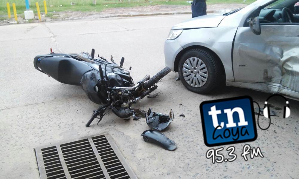 Ocurrió a las 06 hs de este sábado frente al paseo la Anónima en zona norte, donde una moto Honda Invicta de color negro dominio 717 KJU guiado por un joven Goitia Augusto quien circulaba sin casco impacto de lleno contra un automóvil VW TREND de color gris chapa patente IDP 268 conducido por Cardozo. Al conductor del rodado mayor le dio negativo el test de alcoholemia, en tanto al motociclista no se le pudo realizar debido a que presentaba serias heridas en el rostro.