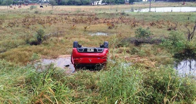 El vehículo es un Peugeot 308 dominio TND 122 conducido por Marcos Raúl Vallejos, policía federal, quien iba acompañado por una mujer, perdió el dominio del vehículo y tumbó quedando el mismo con las ruedas para arriba en la banquina. Afortunadamente no sufrieron lesiones importantes.