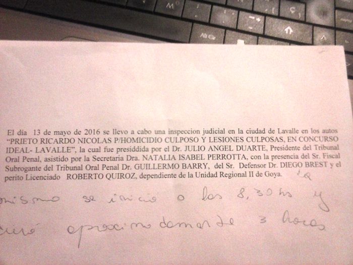 De acuerdo al informe las investigaciones realizadas por Juzgado de Instrucción Nº2 de la ciudad de Goya, en el año 2012 se dictó el auto de procesamiento en contra del productor hortícola del paraje Puerto Viejo, departamento Lavalle, Ricardo Nicolás Prieto, encontrándolo culpable prima facie y en esta instancia del proceso de los delitos de homicidio culposo agravado y lesiones (gravísimas) agravadas.