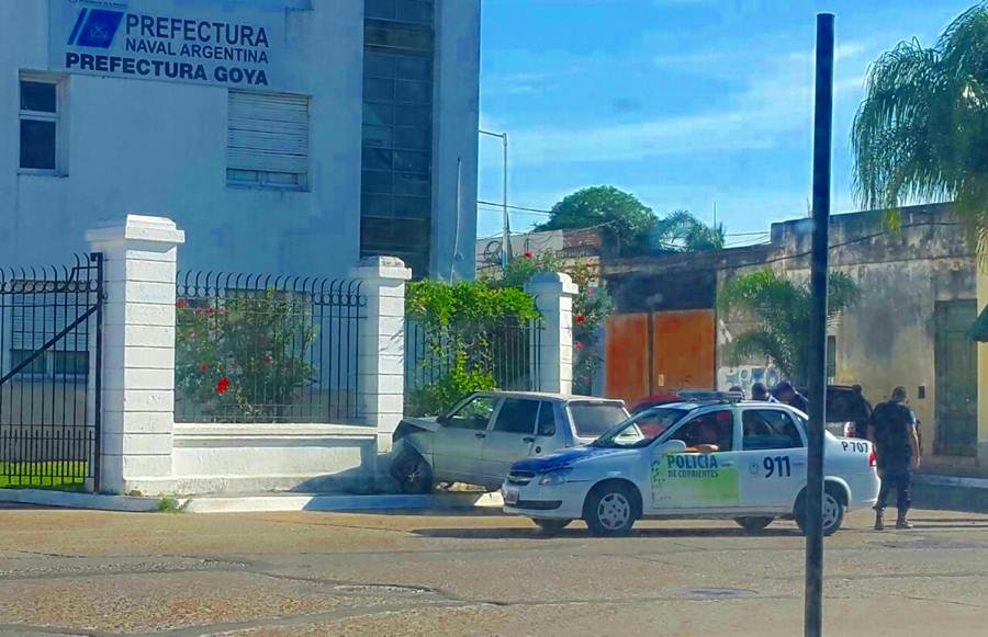 Un Fiat Uno dominio colocado HKL 455, guiado por Rubén Canteros, se incrusto en el muro perimetral de Prefectura Goya, el hecho tuvo lugar pasadas las 08 hs de este lunes, en 25 de mayo y Wenceslao Fernández. Estaba dando vueltas a la manzana a una velocidad considerable y la segunda vuelta le salió mal; termino chocando”, dijo un testigo a cronista de Tngoya. Una vez constituido en el lugar las autoridades, y practicarle el test de alcoholemia, le dio positivo con 1.72º de alcohol en sangre, solo fue daños materiales en el rodado, no hubo lesionados. IMAGENES