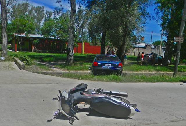 En la avenida del Trabajo y Tucumán, un motociclista que circulaba sentido este-oeste en contramano choca a un automóvil, ocasionando que quedara al borde del canal de desagüe ubicado al costado de la avenida. El conductor de la moto huyo del lugar.