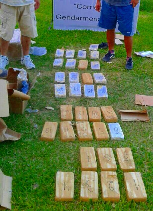 En la tarde del viernes aproximadamente las 19 hs gendarmería nacional intercepto en Ruta 27 cerca de Santa Lucia, una traffic de la Empresa “ELISA", con destino a Goya. Transportaba pasajeros y encomiendas, donde en la requisa por los uniformados lograron hallar 33 ladrillos de Marihuana, cuyo pesaje arrojó 27 kilos con 700 gramos. El chofer quedó detenido y en la mañana del sábado iba ser trasladado al juzgado federal de capital. FOTO DE LA MARIHUANA