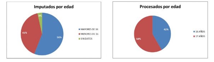 Del total de 143 imputados, al momento del hecho 80 tenían más de 16 años de edad; 58, menos de 16 años; no contando con datos de 5 de ellos. En cuanto a los procesados, 7 tenían 17 años; y 5 de ellos, 16, conformando un total de 12 procesados a lo largo del año.