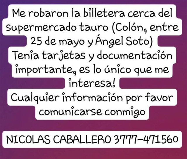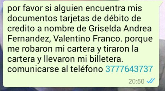 Las víctimas de los ilícitos son la señora de apellido Fernández y un hombre identificado Nicolás Caballero. A continuación pueden obtener los números de referencias para su contacto en caso de hallar las documentaciones tiradas en la vía pública.