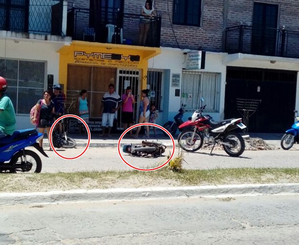 Un hombre de apellido Lezcano, transitaba en un ciclomotor marca Juki junto a su hija camino al Colegio y el rodado se partió en dos. Ocurrió en Av. Sarmiento al 180. La menor al caer, termino con fuertes golpes en la cabeza, en tanto el padre resulto herida con escoriaciones. Ambos fueron asistidos por Bomberos.