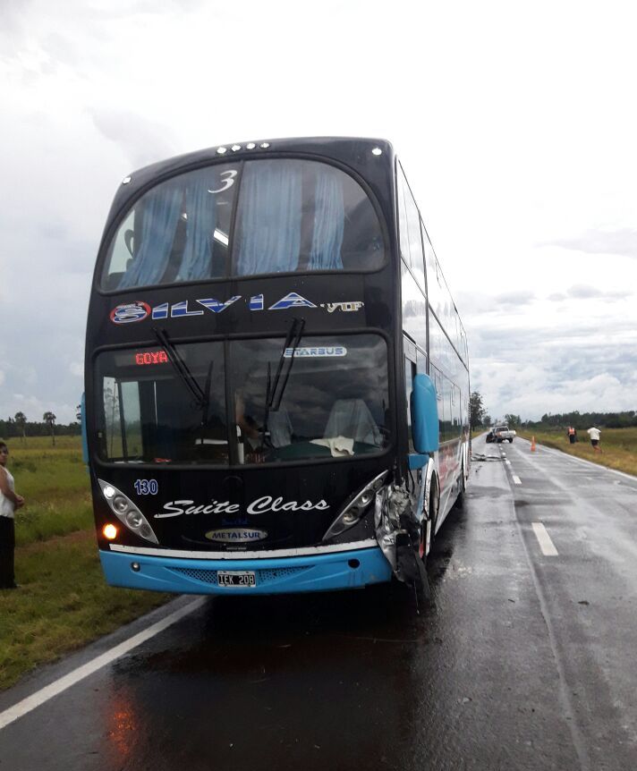 En horas de la madrugada del domingo, tras la intensa lluvia, en el cruce de la RN 12 y la 14 ocurrió una colisión entre un colectivo de transporte de larga distancia de la empresa Silvia, conducido por Ricardo Flores y una camioneta que llevo la peor parte conducida por el hijo Figueroa, de nombre Matías. El joven fue trasladado a Corrientes Capital y su estado es reservado. Fuentes aseguran que con la fuerte lluvia no le habría permitido ver la línea blanca de la ruta.