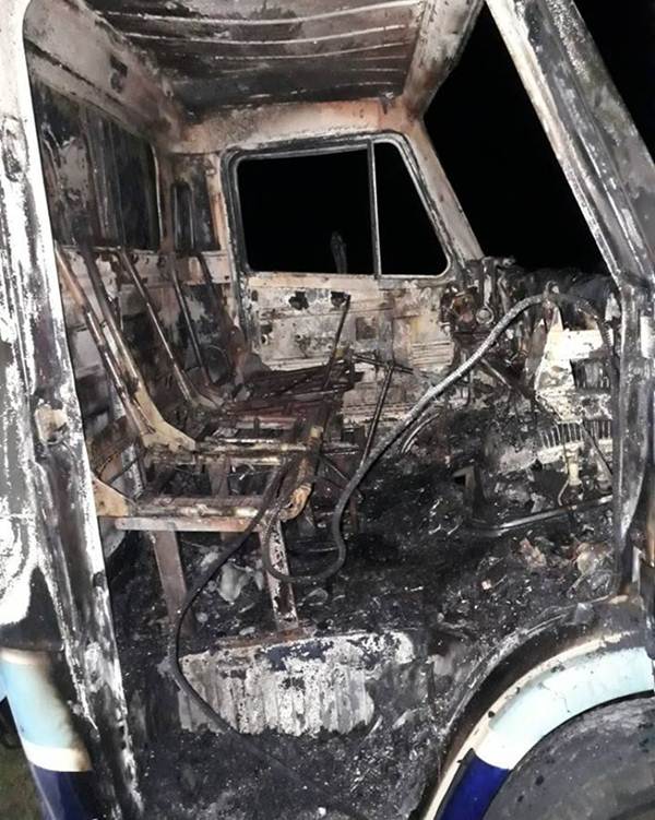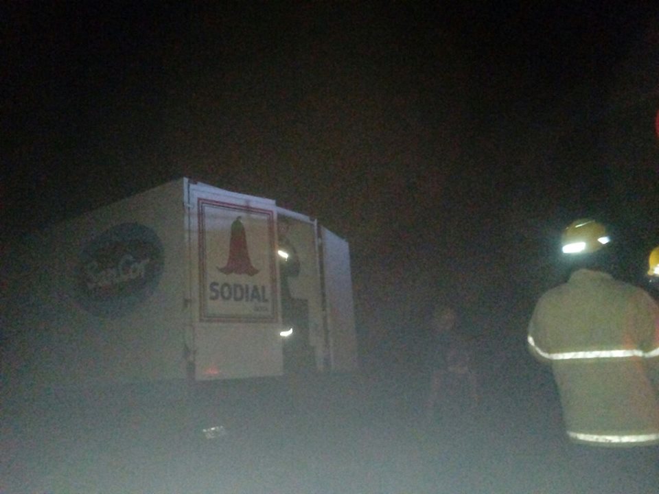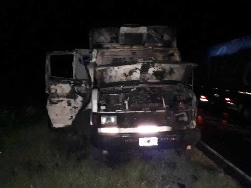 Así ardió anoche un camión de transporte alimenticio de la empresa Sancor Goya, sobre Ruta 27 en Desmochado. El conductor fue identificado como Mendoza José, de 60 años de edad, resultó ileso y el vehículo quedo consumido por las llamas, el foco ígneo se habría originado por desperfecto en la parte eléctrica.