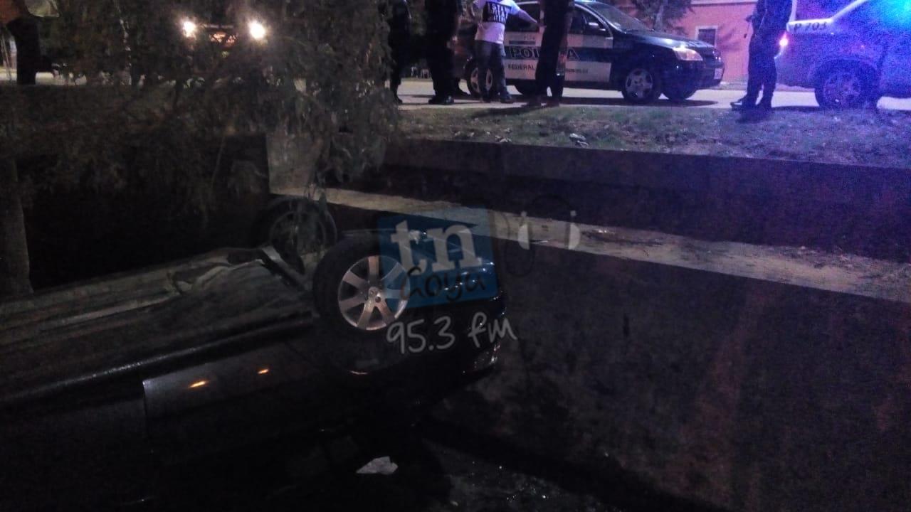 En la noche del sábado volcó un personal federal dentro del canal de desagüe, según se pudo saber en el rodado se desplazaban una madre junto a su hija, todo se generó a raíz que un motociclista se cruzó delante y al volantear para evitar chocarlo terminaron dentro del canal a cielo abierto en Avenida del Trabajo y Tucumán de la zona sur de la ciudad. Fueron asistidos por una dotación de Bomberos Voluntarios.