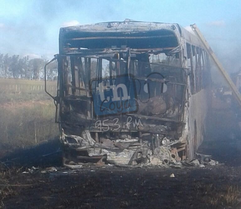 Micro que une Goya-Paso de los Libres, totalmente destruido por incendio
