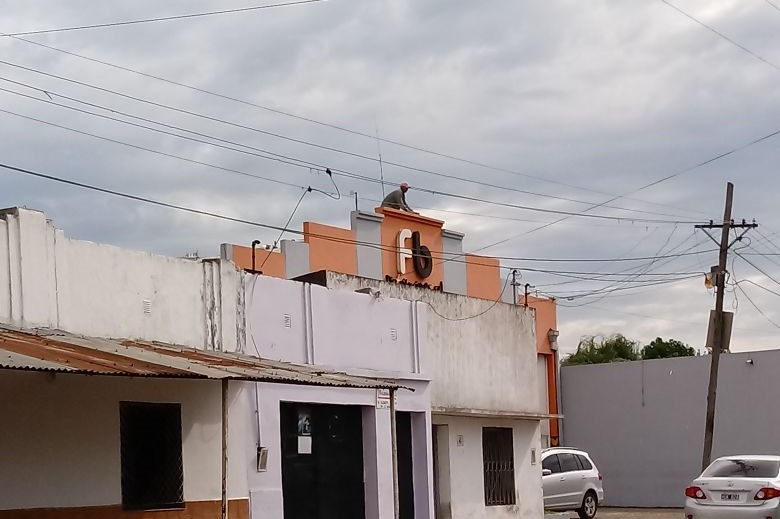 . Posteriormente en la mañana del lunes, personal del comercio procedieron a reparar los daños en el techo, debido a que estaban levantados en la parte del frente.