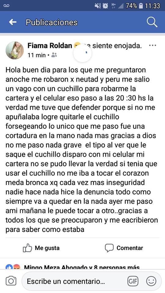 Una joven fue asaltada en la vía publica en la noche del martes, fue a punta de cuchillo en Av. Neustad y Perú, se resistió primeramente a despojarse se sus pertenencias, en el forcejeo fue tajeada en una mano con el arma blanca, el ladrón huyo llevándose el celular, ella fue socorrida por una vecina que vive cerca quien salió a la calle ante los gritos desesperados de la víctima en pedido de ayuda. Interviene comisaría 5ta.