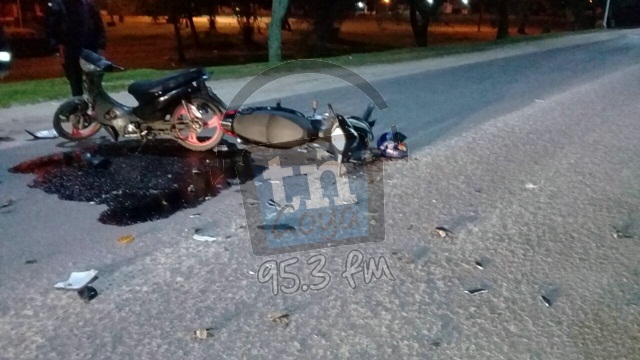 El episodio ocurrió cerca de las 5,30 de la mañana de este domingo sobre avenida Alem y Paso de Los Libres en donde dos motocicletas colisionaron. Uno de los rodados era conducido por una mujer a bordo de una Corben 125c/c de color negro chapa patente 224 LEQ Domínguez Norma Cecilia con domicilio en la zona sur de la ciudad en tanto el otro protagonista quien huyo del lugar mal herido según testimonios de testigos circulaba a bordo de una Brava de color negro sin dominio. En el lugar acudieron efectivos policiales de comisaria 2da , personal del cuerpo de bomberos de la ciudad y ambulancia del nosocomio local.