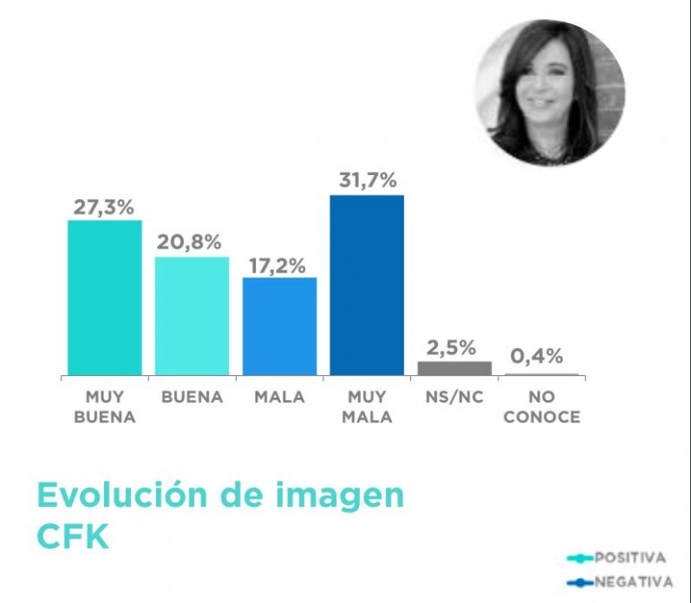 El sondeo demostró que el 27,3 por ciento de los consultados cree que Cristina Kirchner tiene una imagen muy buena, mientras que el 20,8 por ciento considera que su desempeño fue bueno. El 31,7 tiene una muy mala consideración acerca de la ex presidenta y el 17,2 tiene opiniones malas.