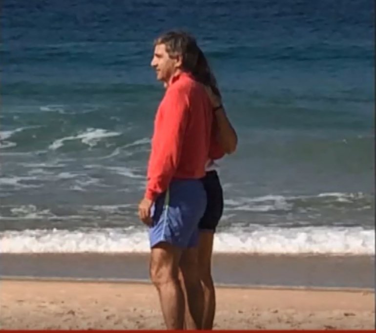 En la publicación de la editorial Perfil, que fue replicada por C5N, se puede observar al funcionario acostado en la arena con una remera roja mirando al sol.