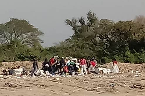 Familias esperan al camión de basura para ver si encuentran algún colchón, cartón o algo para vender