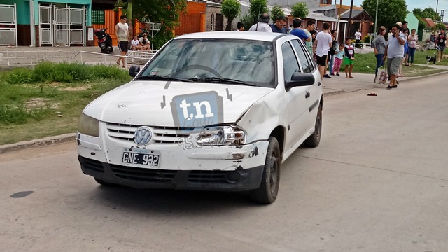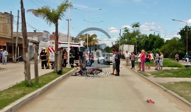 Ocurrió en avenida del Trabajo al 50, cerca de las 12.30 horas del mediodía del domingo, una mujer identificada como Gauna Gladys Soledad quien circulaba a bordo de una motocicleta de color rojo dominio A 041 ONJ quien termino con una herida sangrante en la frente producto de la caída tras la colisión con un automóvil VW Gol de color blanco patente colocada GNE 932 conducido por un hombre de apellido Escobar.