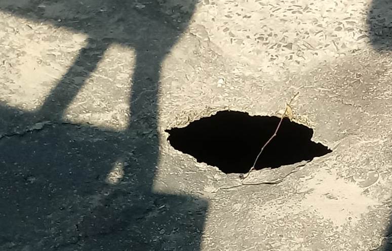 Se hundió el pavimento frente a APIPE y corre peligro la zona