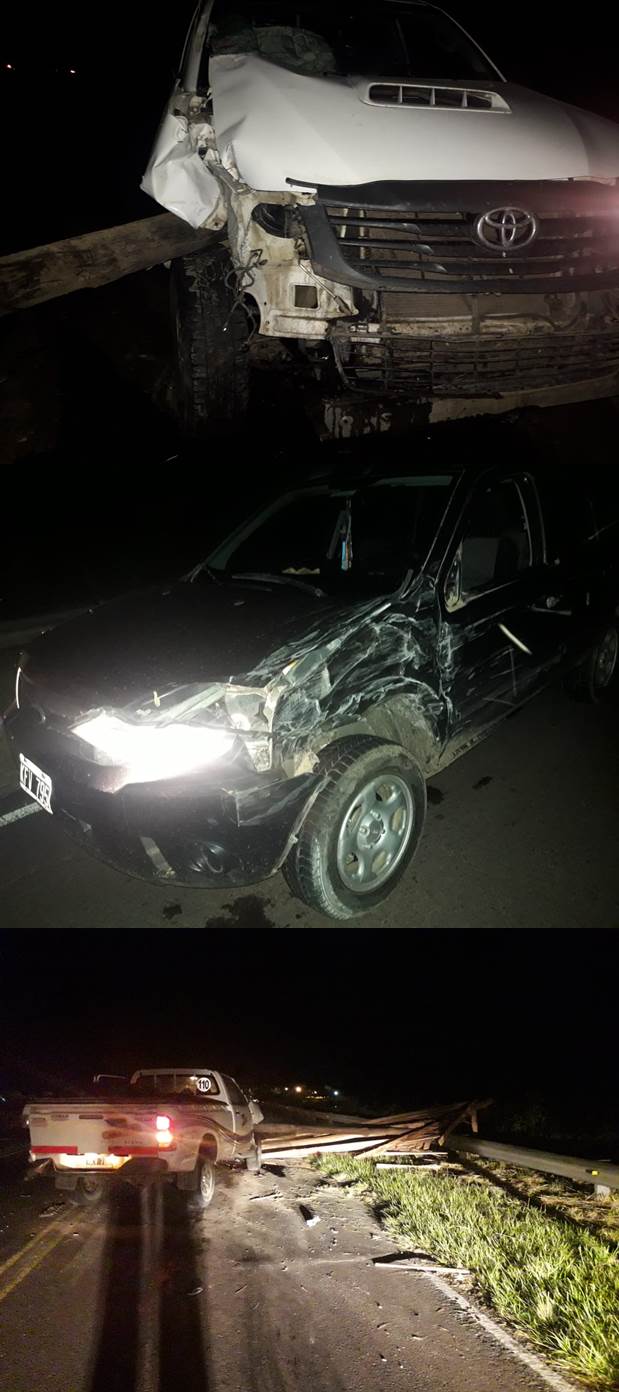 LA CRONICA Todo ocurre cuando camioneta Chevrolet conducido por un hombre de apellido Monje, se desplazaba de norte a sur y tiraba un tráiler sin las luces correspondientes y con la carga sin las medidas de seguridad correspondiente, ocasiona el hecho cuando llega a la subida del Puente Santa Lucia, y pierde parte de postes y maderas que transportaba e impactan de lleno a una Toyota Hikux, de color blanca guiada por un hombre de apellido Fernández, oriundo de Paranacito. En ese momento cruzaba por el lugar en sentido sur norte, un matrimonio de la localidad de Gobernador Martínez, que se desplazaban en una Ford EcoSport, cuyo conductor de apellido Ledesma, resultó con lesiones en brazo izquierdo, el rodado quedó con daños importantes. En el lugar actuó, personal de la Comisaria Lavalle, Bomberos y Personal de Transito de Lavalle.