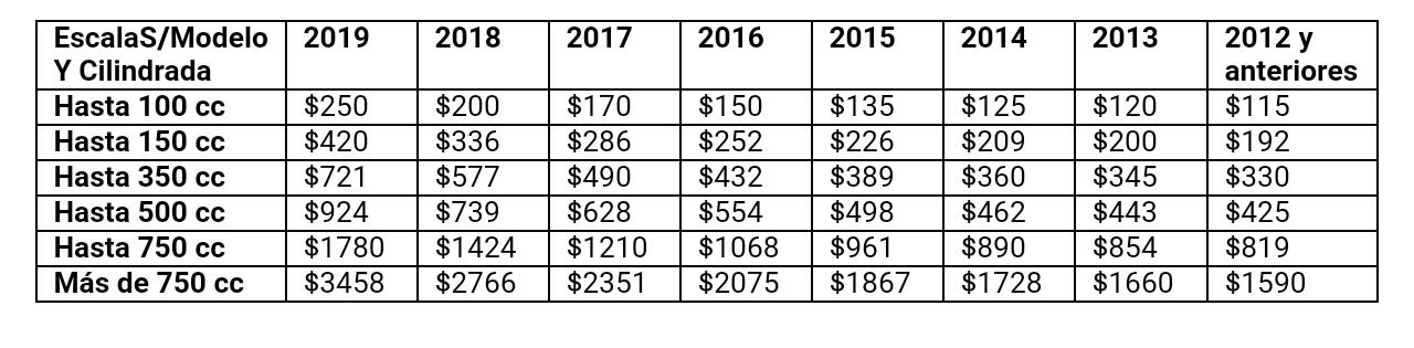 Establecen valores de impuestos para vehículos de dos ruedas y similares para el año 2019