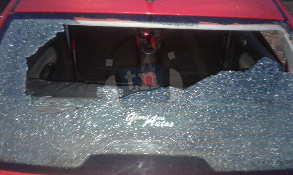 Vándalos rompen a piedrazos luneta de remis y policía los detuvo