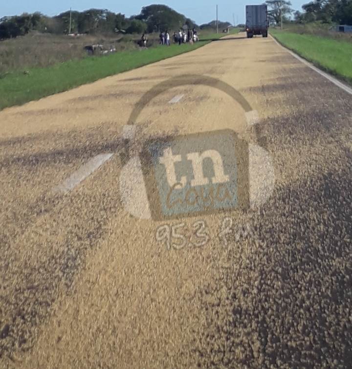 Camión que trasportaba soja iba perdiendo la carga y ocasiono accidente