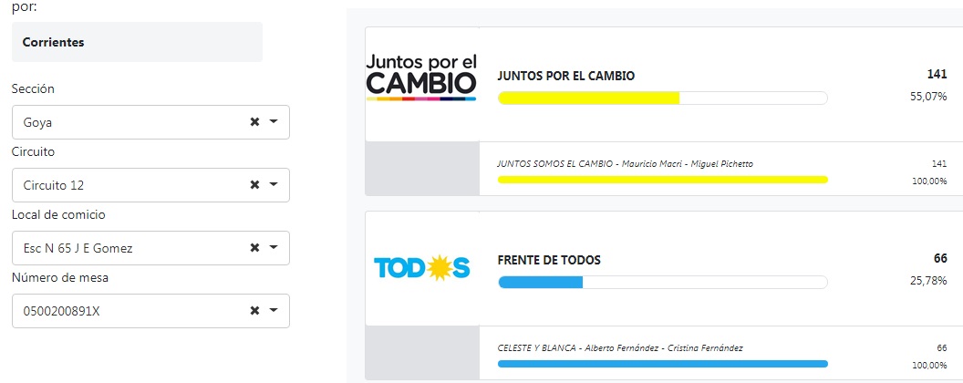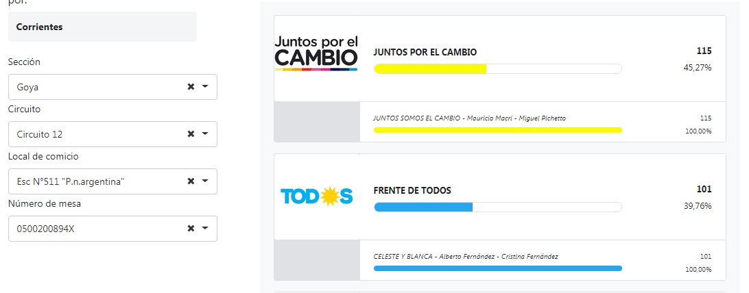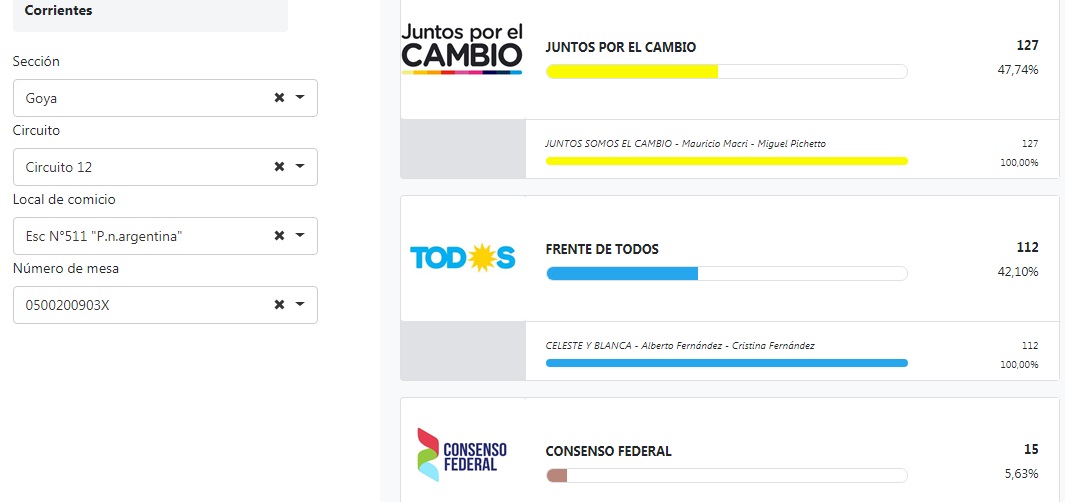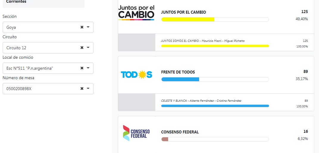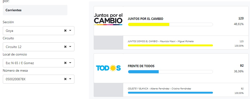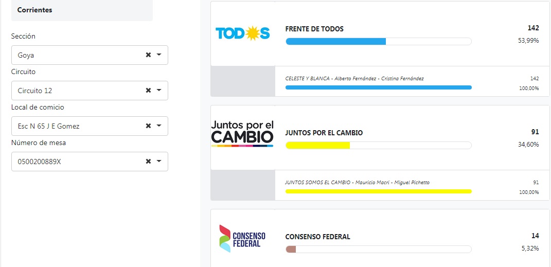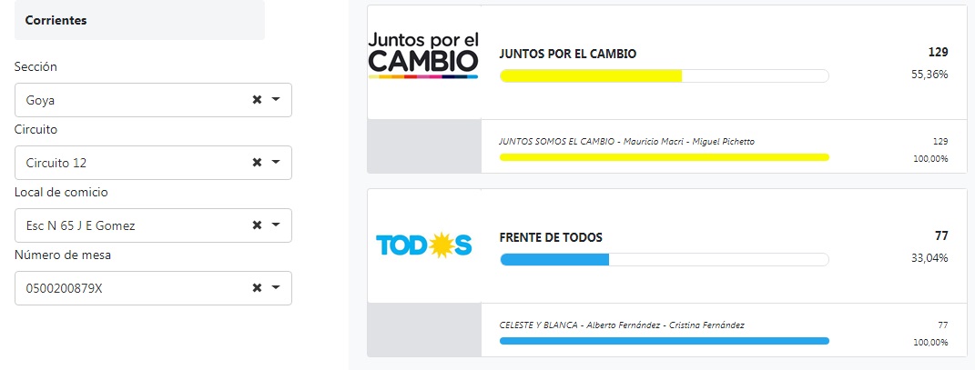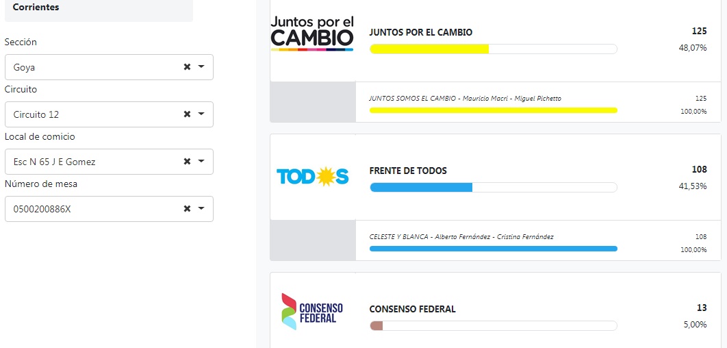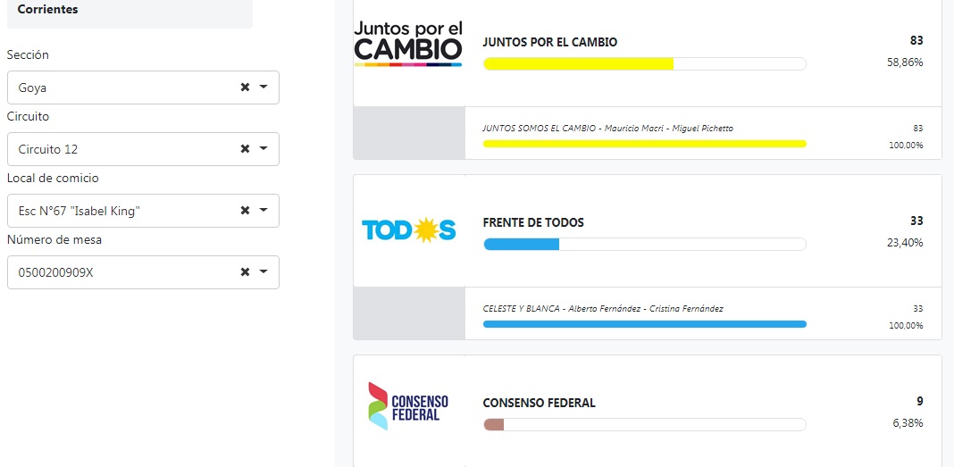 Tras el triunfo de la fórmula Fernandez Fernandez desde TNGoya te mostramos mesa por mesa los resultados que dejó las paso en Goya. En el circuito 12 votaron 8761 personas de los cuales 4048 para Juntos por el Cambio y 3424 para el Frente de Todos. Mira las mesas en la nota.