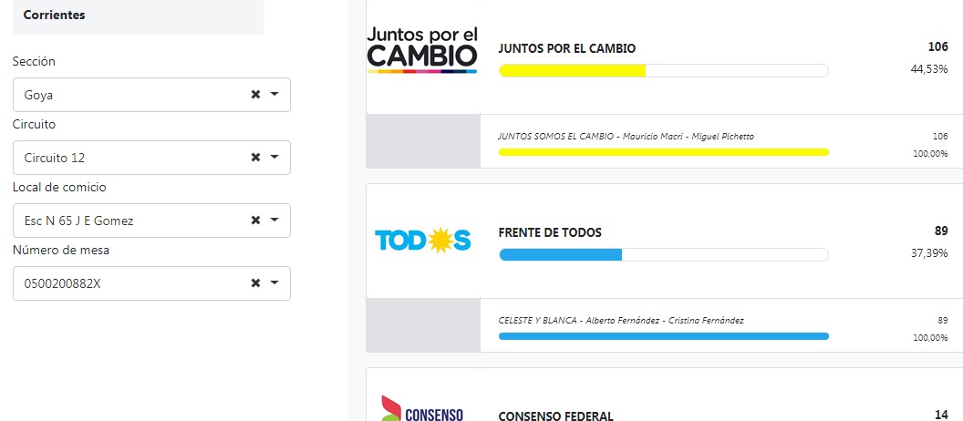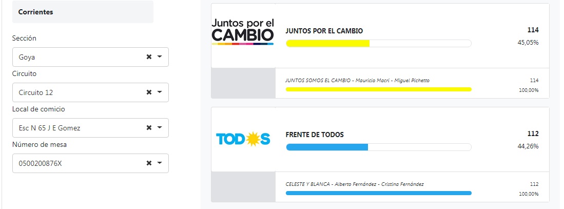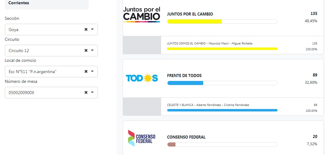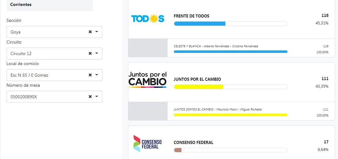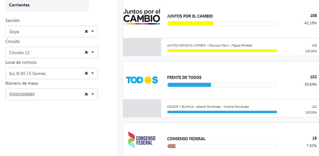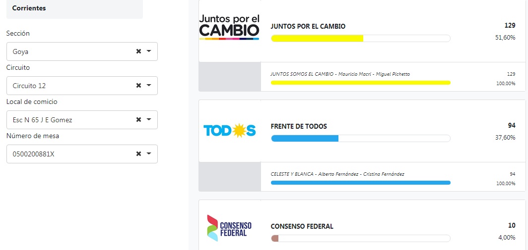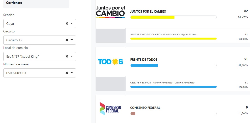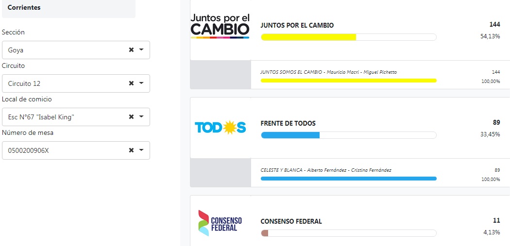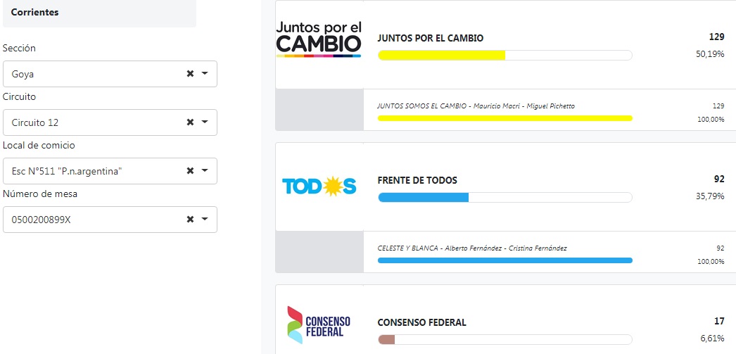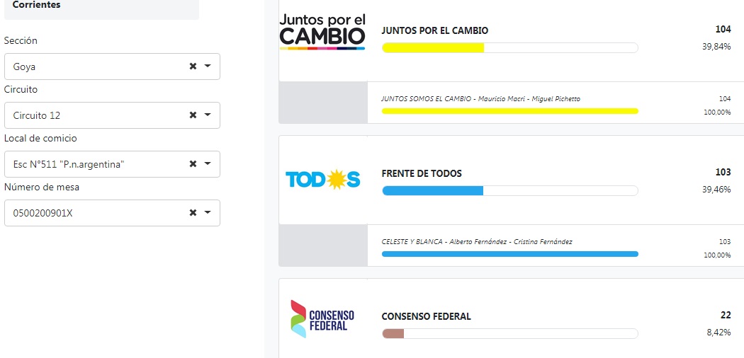 Tras el triunfo de la fórmula Fernandez Fernandez desde TNGoya te mostramos mesa por mesa los resultados que dejó las paso en Goya. En el circuito 12 votaron 8761 personas de los cuales 4048 para Juntos por el Cambio y 3424 para el Frente de Todos. Mira las mesas en la nota.