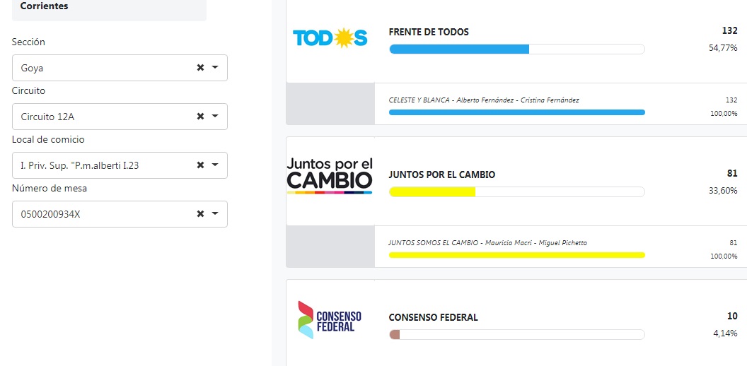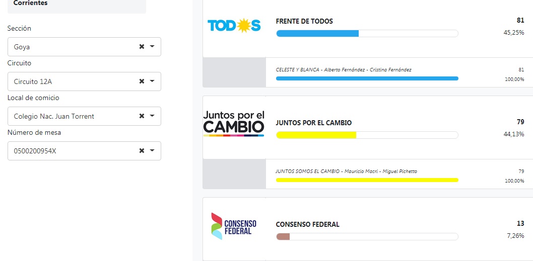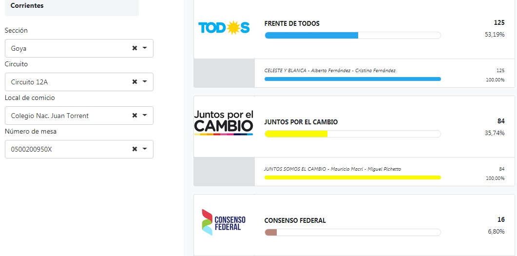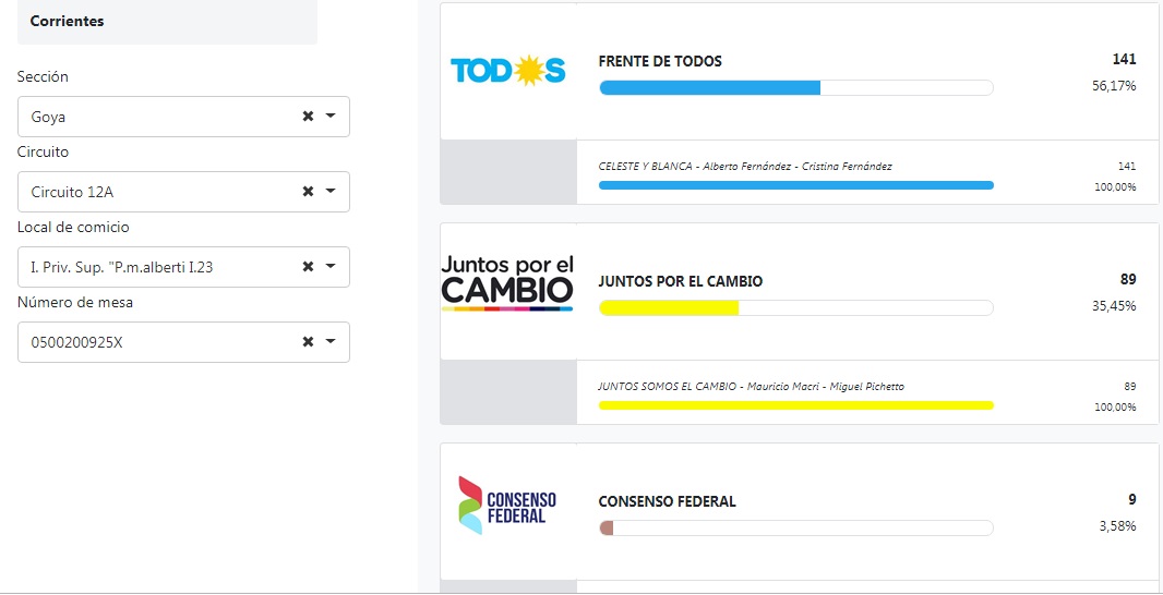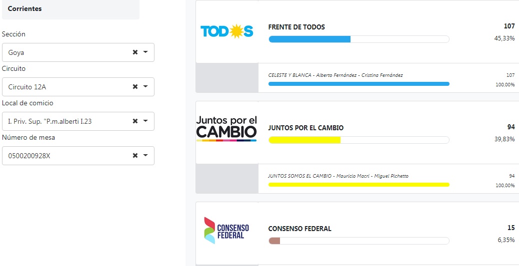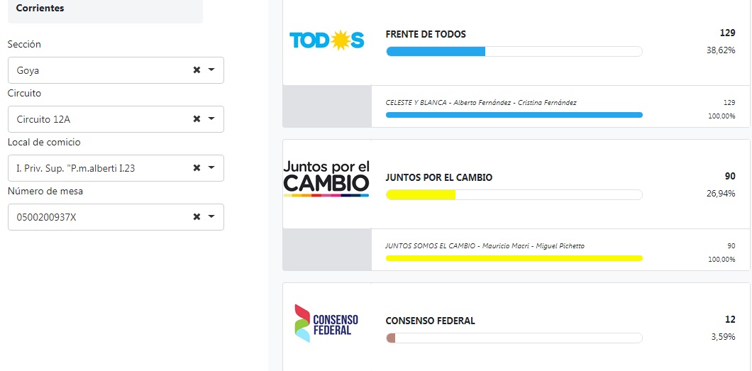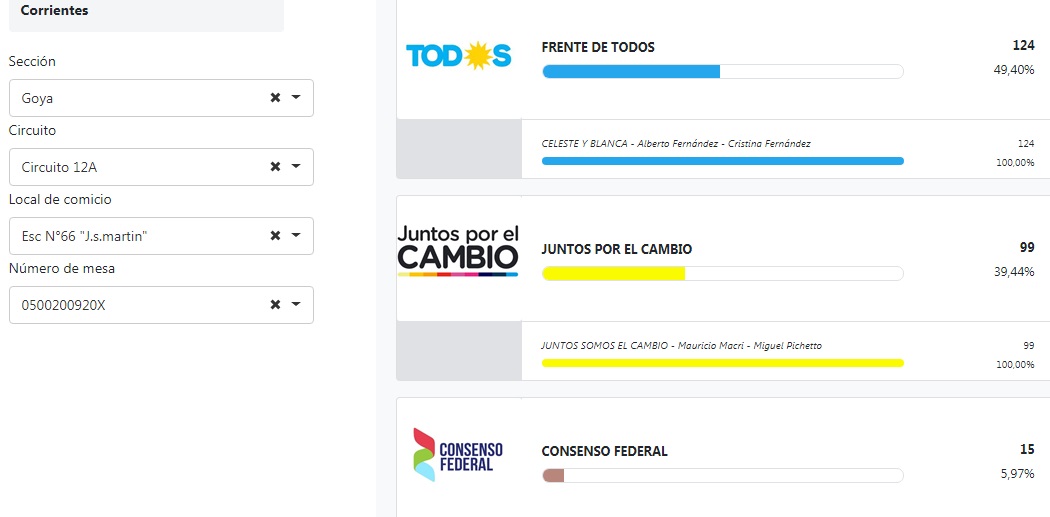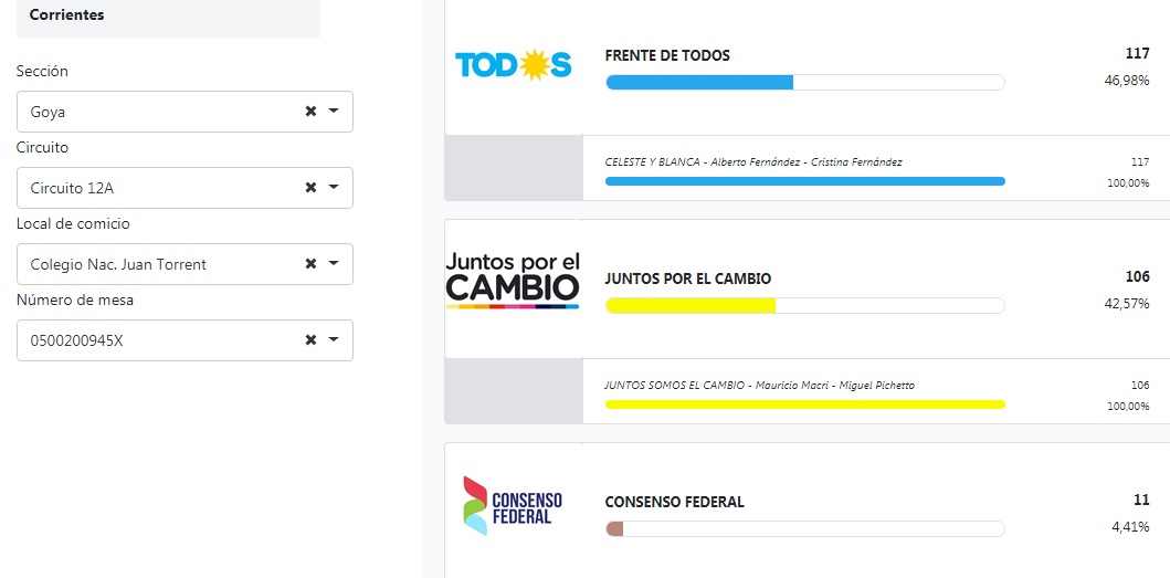 Con un total de 11.119 electores en el Circuito 12A se impuso Alberto Fernández y Cristina Fernández de Kirchner, la cantidad de votos que tuvieron fue de 5.705. Mientras que la fórmula de Macri juntó solo 3.844. Mira mesa por mesa en la nota.