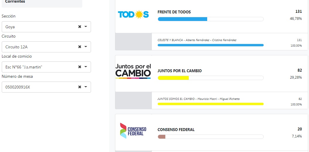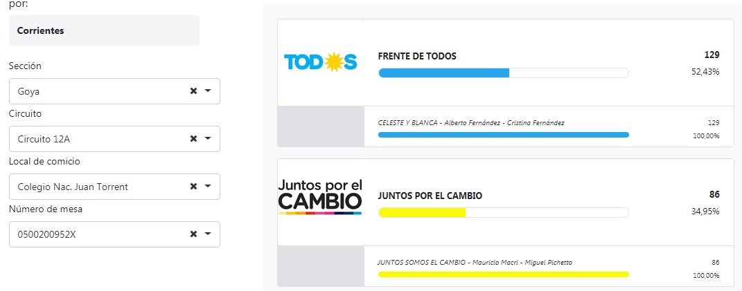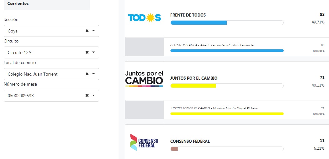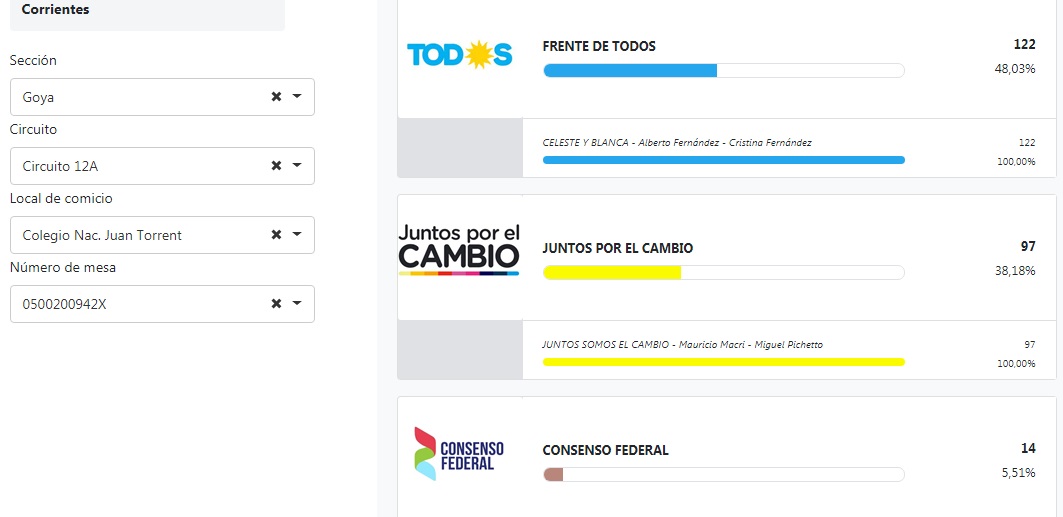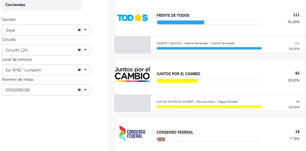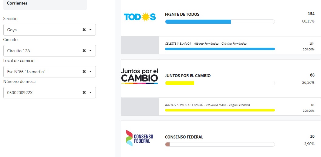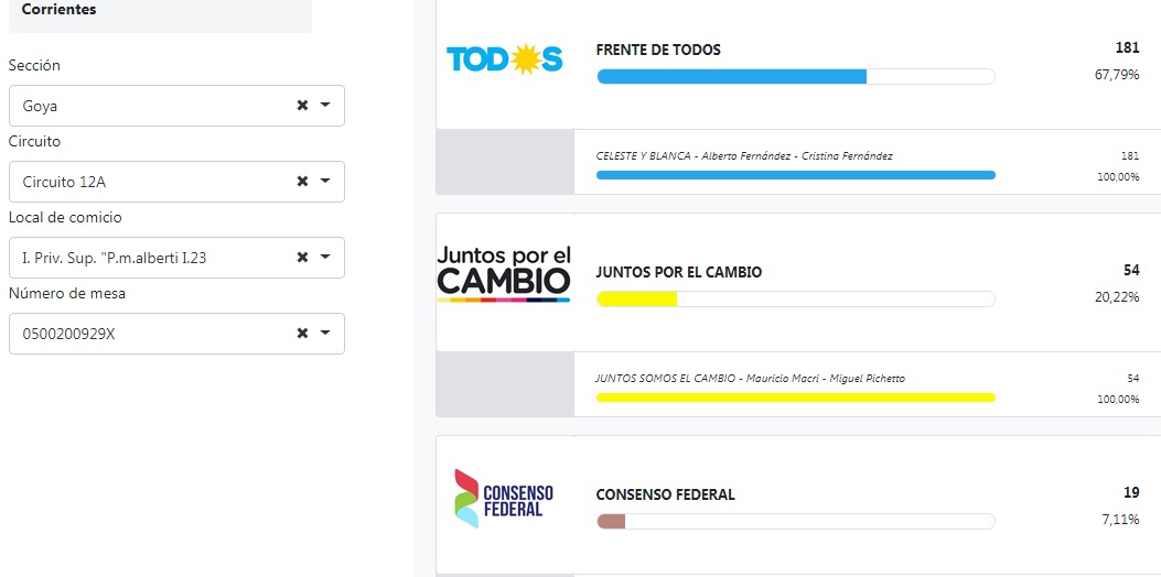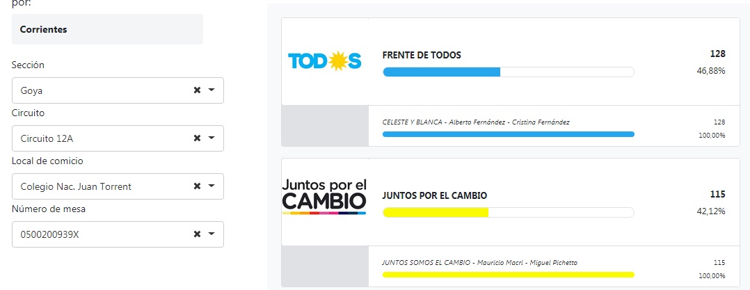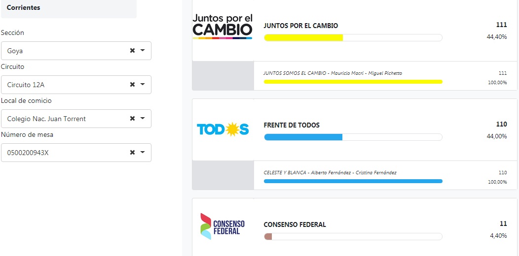 Con un total de 11.119 electores en el Circuito 12A se impuso Alberto Fernández y Cristina Fernández de Kirchner, la cantidad de votos que tuvieron fue de 5.705. Mientras que la fórmula de Macri juntó solo 3.844. Mira mesa por mesa en la nota.