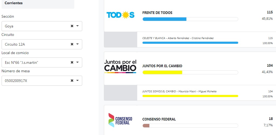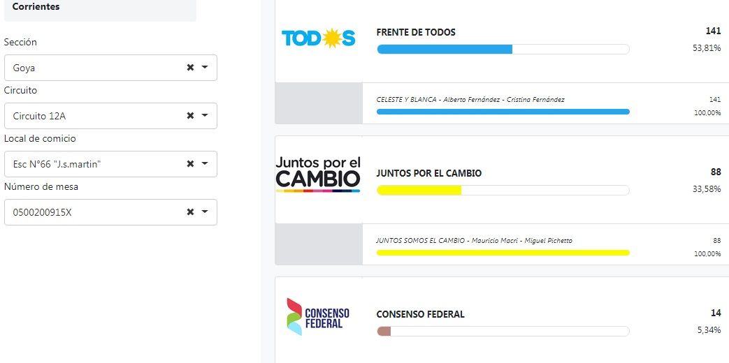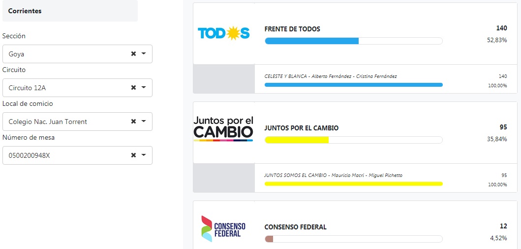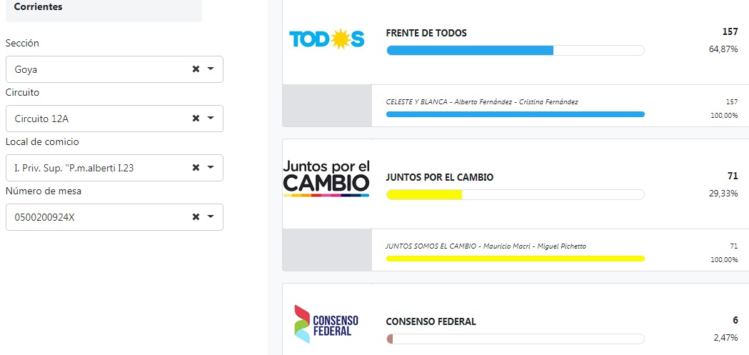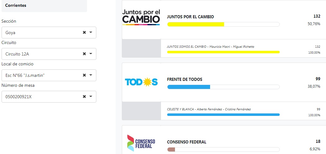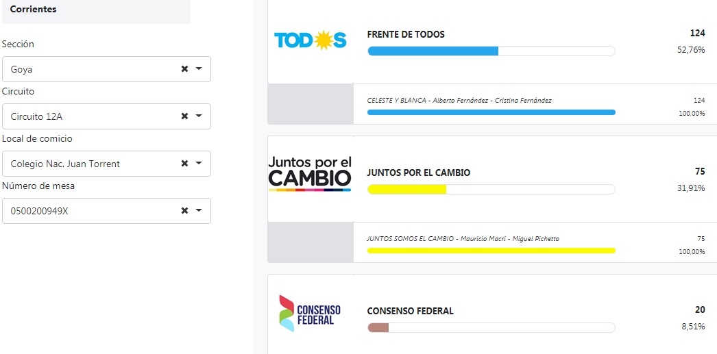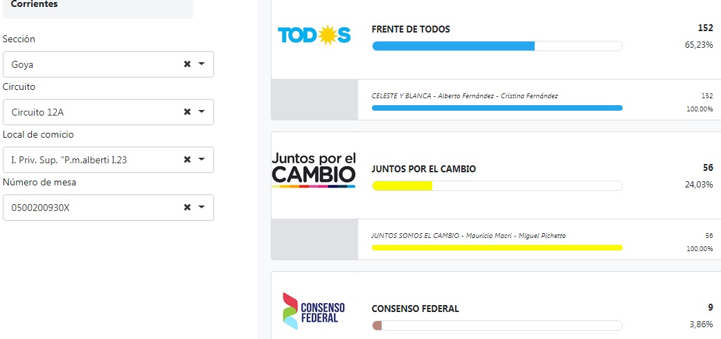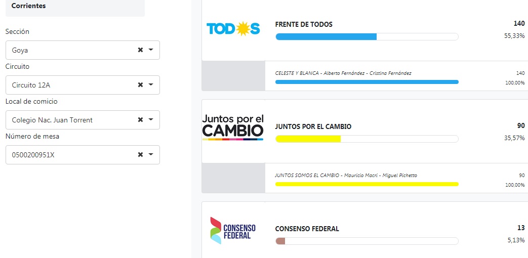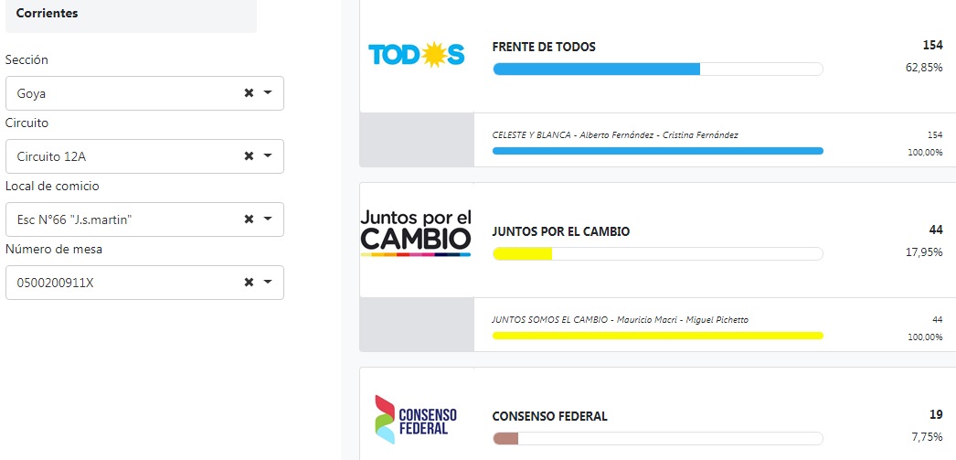 Con un total de 11.119 electores en el Circuito 12A se impuso Alberto Fernández y Cristina Fernández de Kirchner, la cantidad de votos que tuvieron fue de 5.705. Mientras que la fórmula de Macri juntó solo 3.844. Mira mesa por mesa en la nota.