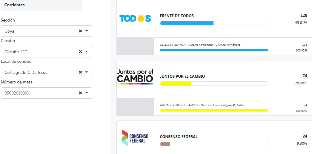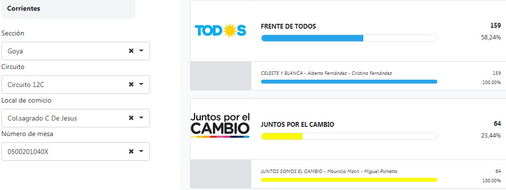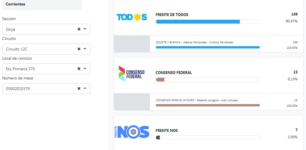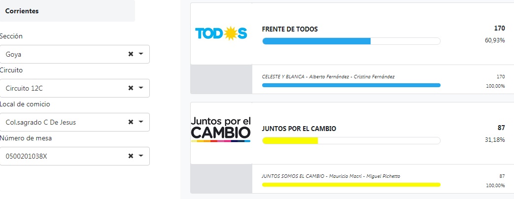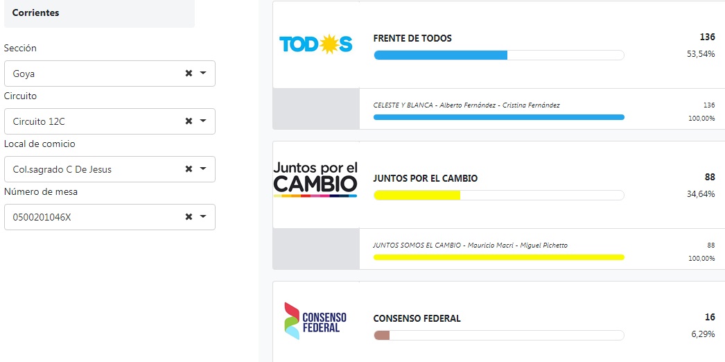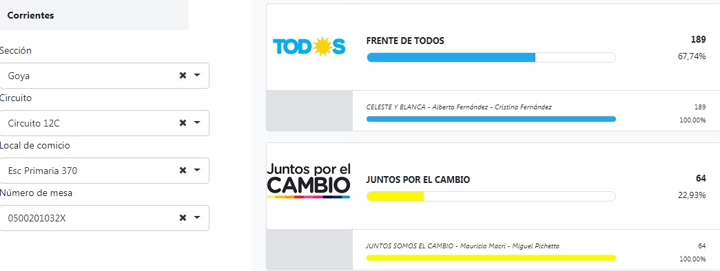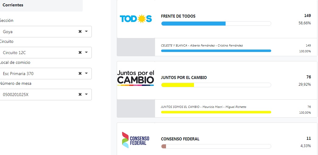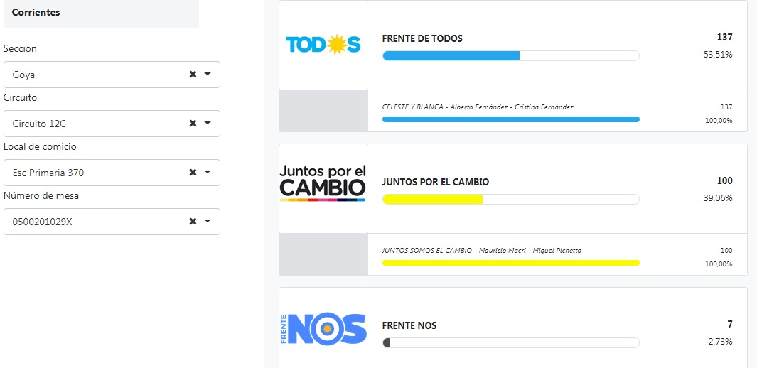 En las 3 escuelas que integran el Circuito 12C Alberto y Cristina triunfaron con más del 52% de los votos, en el mismo participaron 8.739 electores de los cuales 5.056 fue para el Frente de Todos. Entra en la nota y mira los resultados de tu mesa.