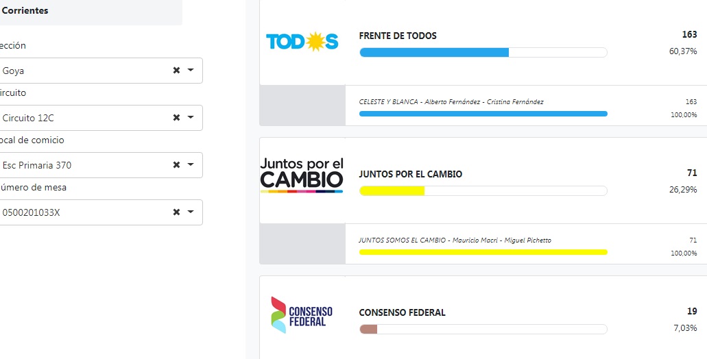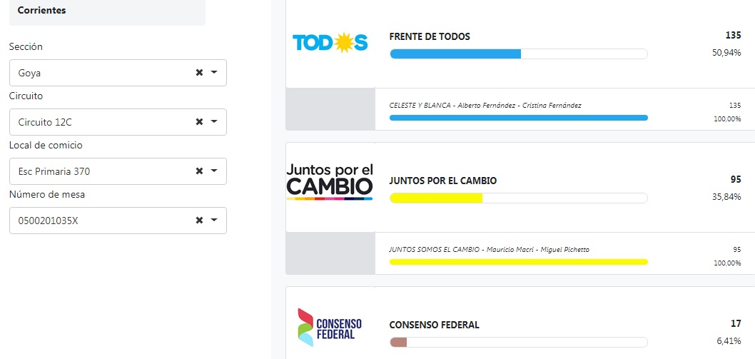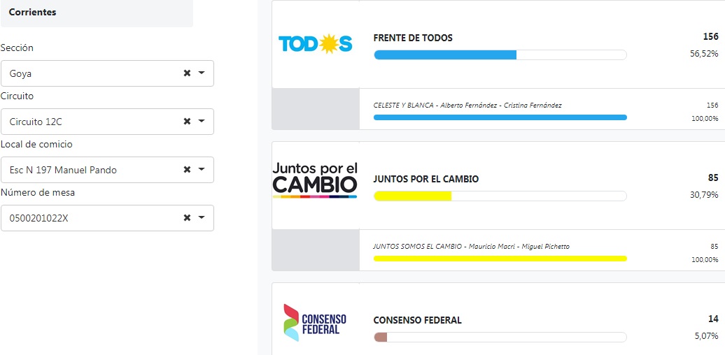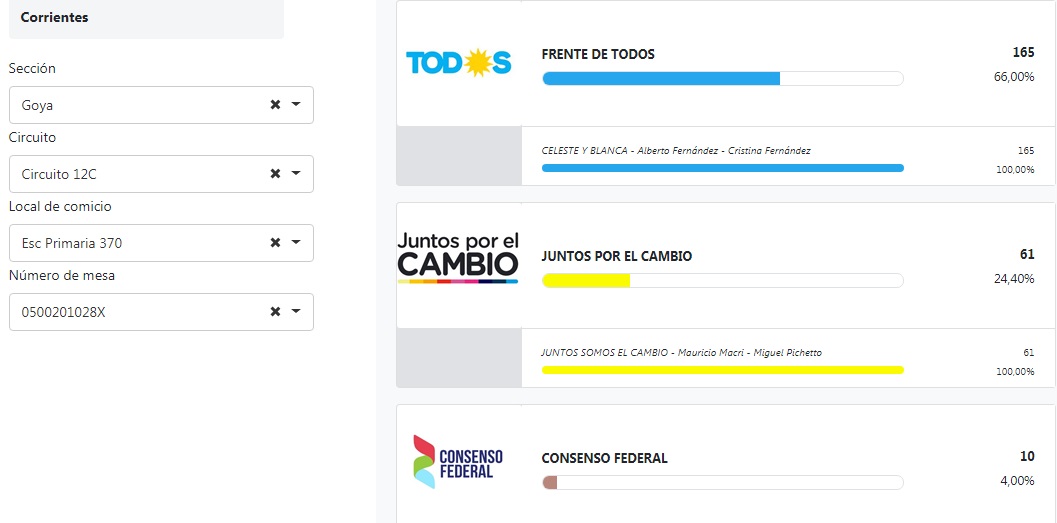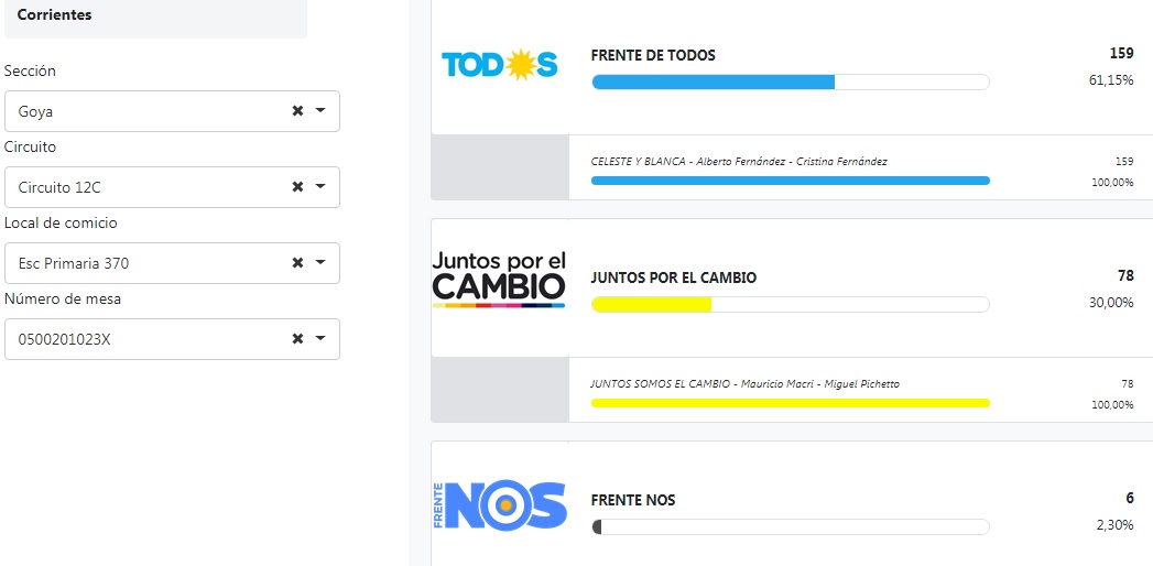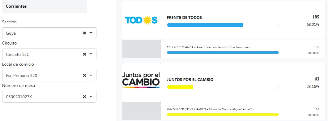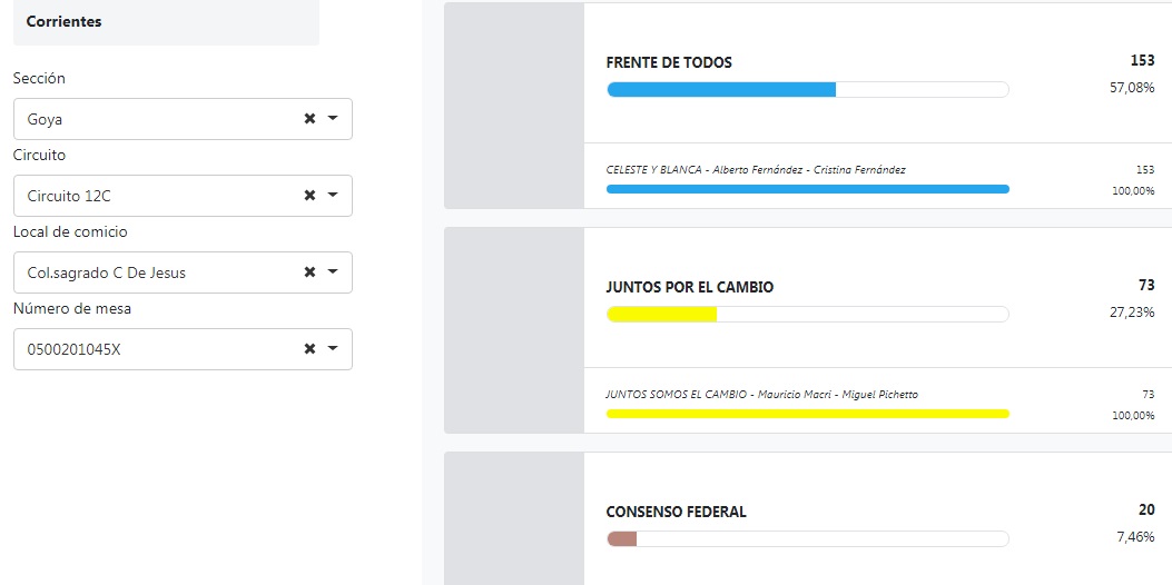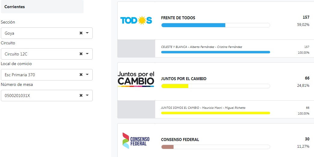 En las 3 escuelas que integran el Circuito 12C Alberto y Cristina triunfaron con más del 52% de los votos, en el mismo participaron 8.739 electores de los cuales 5.056 fue para el Frente de Todos. Entra en la nota y mira los resultados de tu mesa.